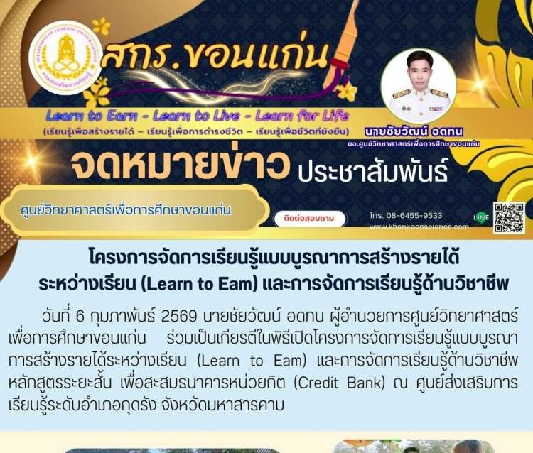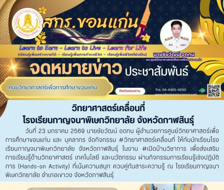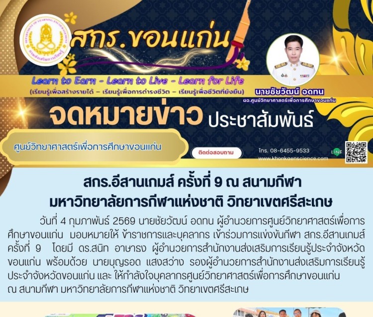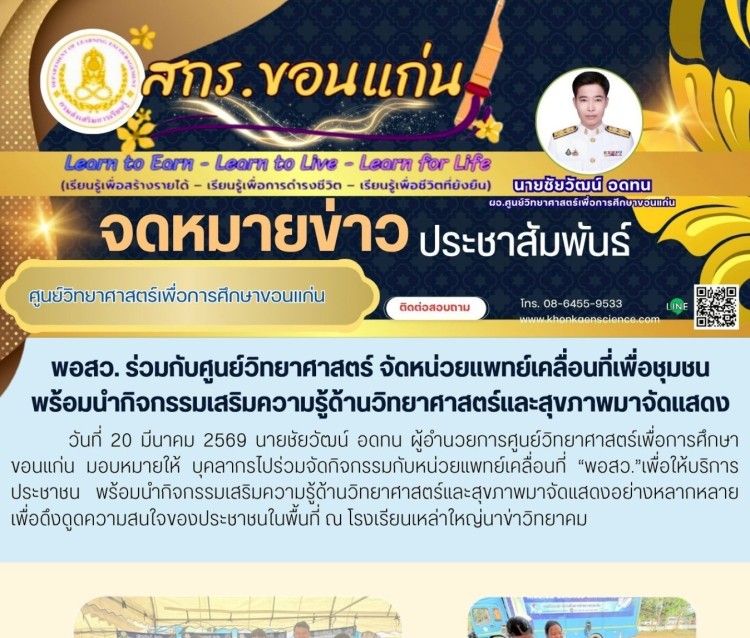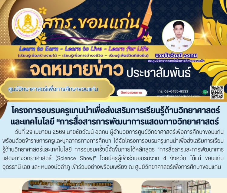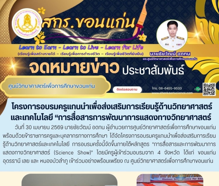 ข่าวประชาสัมพันธ์ ศูนย์วิทยาศาสตร์เพื่อการศึกษาขอนแก่น