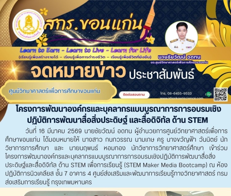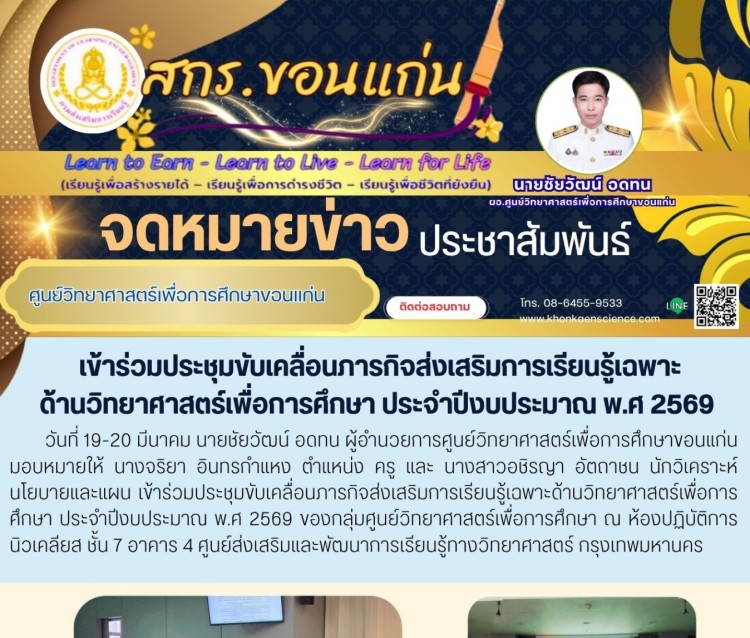 ข่าวประชาสัมพันธ์ ศูนย์วิทยาศาสตร์เพื่อการศึกษาขอนแก่น